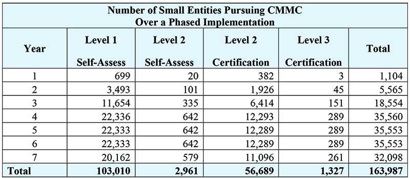 - Within the text of the rule, and in the previous 32 rule, the DoD estimates that during the phased implementation period, the estimated number of small entities to which the rule will apply is: